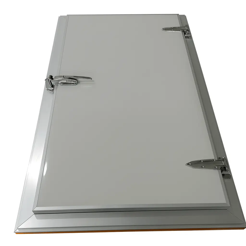 Compared to traditional framed semi-flush cold room doors, the Aluminum-Framed Semi-Flush Door offers a faster and easier installation process. It eliminates the need to fabricate additional PU door frames or embed parts in advance. The door can be directly fixed onto rock wool panels or cold room panels using mushroom head fasteners or rivets, allowing for easy assembly and disassembly. This not only reduces material and labor costs but also enhances flexibility for relocation or maintenance. The flush design further improves hygiene by minimizing gaps where dust and bacteria can accumulate.