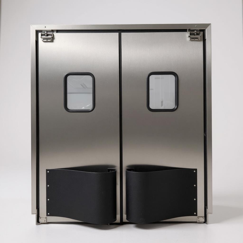 A swing impact door, also known as a double action traffic door or industrial impact-resistant door, is designed to open both ways and self-close. It’s used in commercial and cold storage environments for high-traffic access.